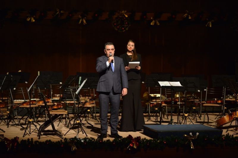 С „Детска молитва“, изпълнена от Християна - възпитаничка на клуб „Ритъм“ започна празничният концерт. Произведения на коледна тематика изпълниха Симфоничният оркестър, с диригент Димитър Караминков, смесеният хор „Добри Чинтулов“, с диригент акад. Методий Григоров и Ансамбълът за народни песни и танци. Гости на празничния концерт бяха квартет „ИНТРО“, които интерпретират класическа музика в съвременен аранжимент.
