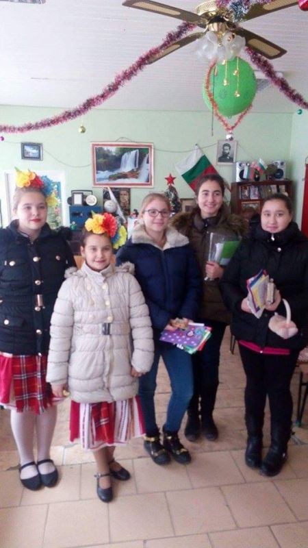 В навечерието на Коледните и Новогодишните празници учениците от клуб „Български фолклор”, поздравиха пенсионерите в квартал ”Сини камъни” с песни, а децата от клуб „Млади възрожденци” им подариха ръчно изработени картички, като им пожелаха много здраве и щастливи мигове. Домакините се зарадваха на поздравa на учениците от ОУ ”Елисавета Багряна”– Сливен, а децата получиха за награда вкусни лакомства.