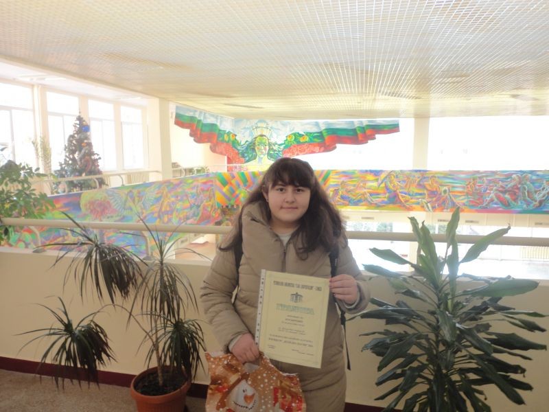 Ученичката Назлъ Риза Чобан от 6 „в” клас при ОУ „Елисавета Багряна” спечели поощрителна награда.