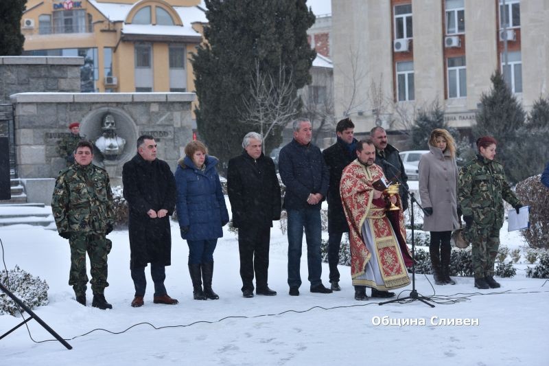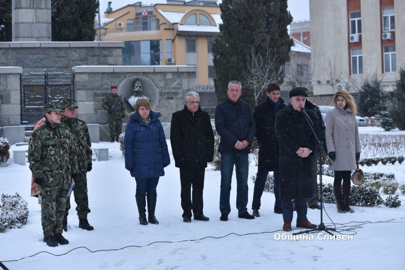 Кметът на града Стефан Радев подчерта значението на този отколешен ритуал и се обърна с приветствени думи към съвременните бранители на Република България. „Община Сливен подкрепя и ще подкрепя инициативите, които прославят подвига на нашите деди и прадеди, воювали смело и защитавали с чест, под бойните знамена Род и Родина. Надявам се, че ще бъдем достойни наследници и свято ще пазим завещаните от предците ни традиции, като се вдъхновяваме от тяхната саможертва. Нека с усърдие вярно да служим на нашия народ!”, посочи Радев.