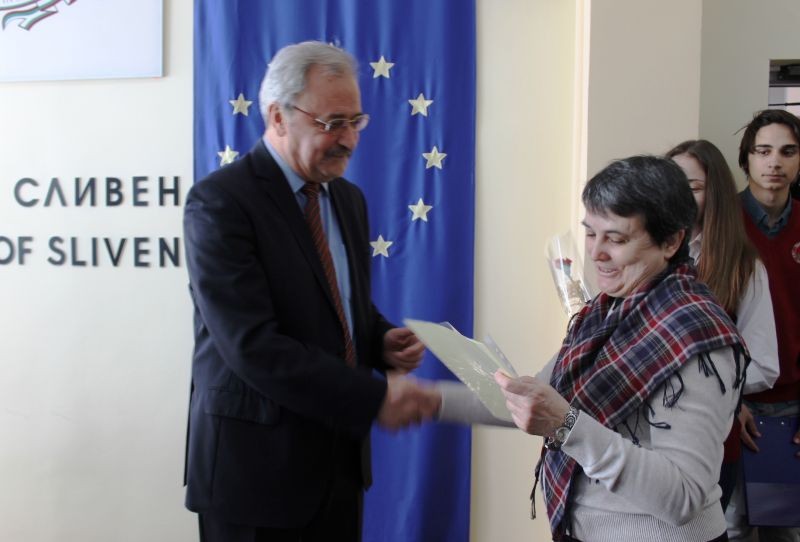 Петкова и Кавръков връчиха на членове на сливенското дружество дипломи от проф. Захариев – председател на Федерацията за приятелство с народите на Русия и ОНД, за активна дейност за развитието на сътрудничеството между България и Руската федерация и народите от ОНД.
