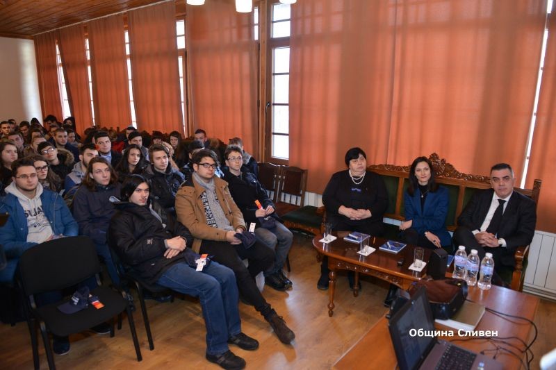 Сред официалните гости на дискусията беше и началникът на Регионално управление на образованието - Сливен - д-р Бисерка Михалева, която също приветства учениците и им пожела на добър път. Бисерка Димитрова от Центъра за кариерно ориентиране, която беше домакин на събитието, запозна младите хора с възможностите им в България.