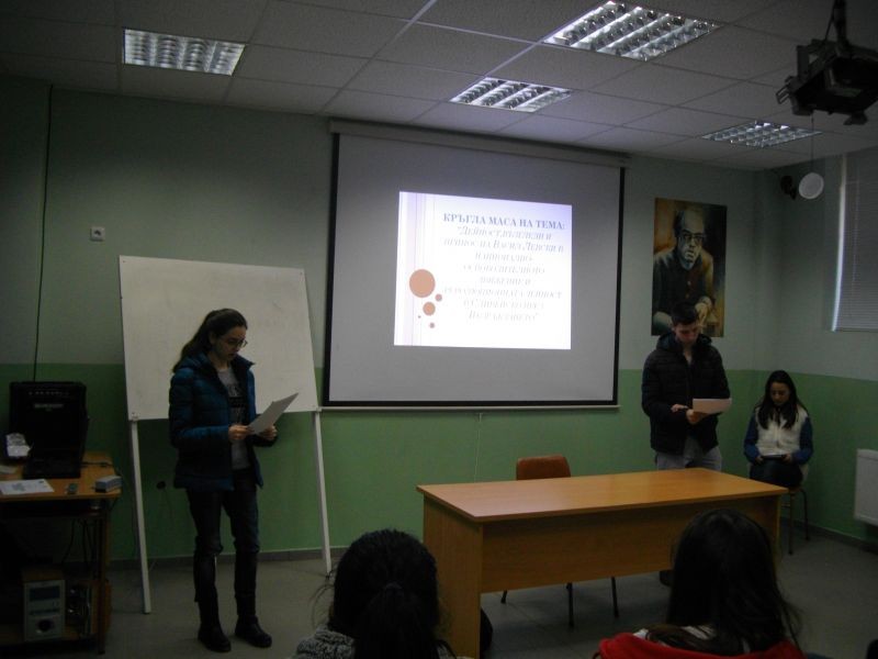 На 17 февруари в мултимедийната зала на гимназията се проведе кръгла маса на тема: „Дейност, възгледи и принос на Васил Левски в национално-освободителното движение и революционната дейност в Сливенско през Възраждането”. Тя бе организирана от участниците в училищния клуб „Памет”. Свои реферати по темата представиха учениците от единадесети и дванадесети клас Иван Тенев, Мария Радева, Благовеста Панкова, Симона Калчева и Виктория Вичева. Събитието започна със стихове за Левски в изпълнение на Стилиян Господинов,а в ролята на водещ- Михаела Малинова.