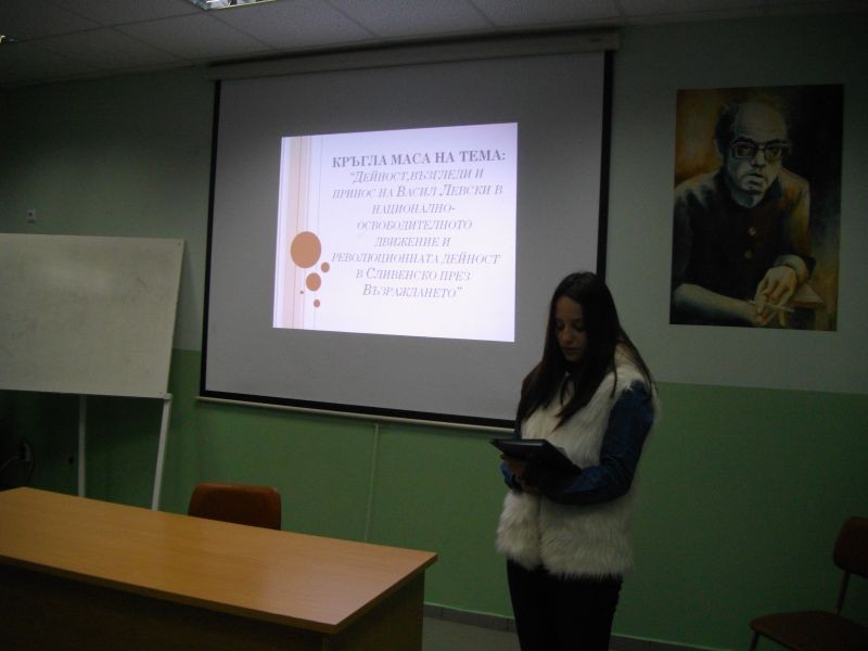 На 17 февруари в мултимедийната зала на гимназията се проведе кръгла маса на тема: „Дейност, възгледи и принос на Васил Левски в национално-освободителното движение и революционната дейност в Сливенско през Възраждането”. Тя бе организирана от участниците в училищния клуб „Памет”. Свои реферати по темата представиха учениците от единадесети и дванадесети клас Иван Тенев, Мария Радева, Благовеста Панкова, Симона Калчева и Виктория Вичева. Събитието започна със стихове за Левски в изпълнение на Стилиян Господинов,а в ролята на водещ- Михаела Малинова.