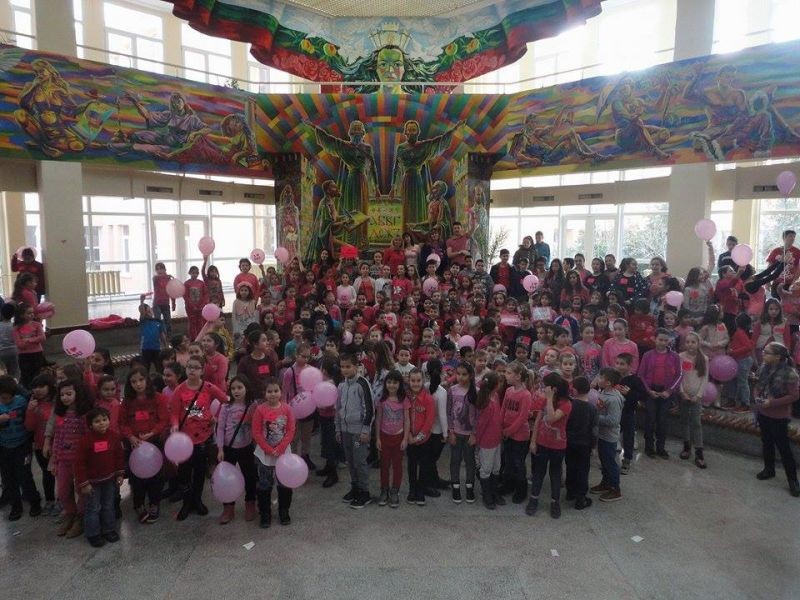 На този ден участниците бяха помолени да носят розово, за да символизират своята позиция против агресията и тормоза в училище. Верни на традициите всички се събраха във форума на училището и танцуваха под звуците на приятна музика.
