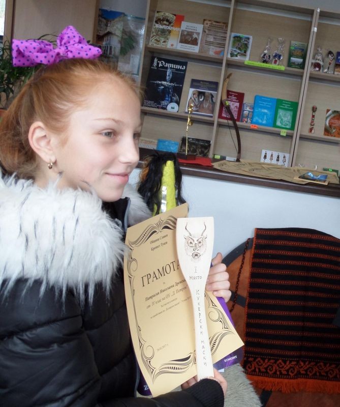 Патрисия Дренска от 4а клас на ОУ "Димитър Петров" в Сливен зае първото място в конкурса за изработване на кукерски маски, който беше организиран от екипа на крепост Туида. Тя и останалите отличени бяха наградени на официална церемония днес.