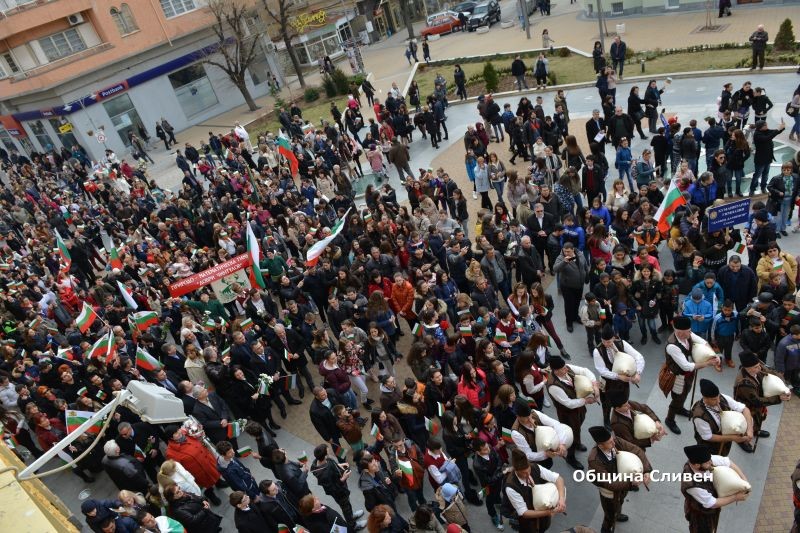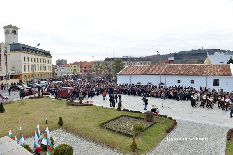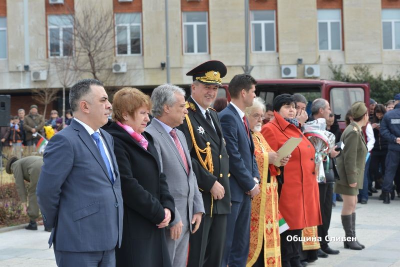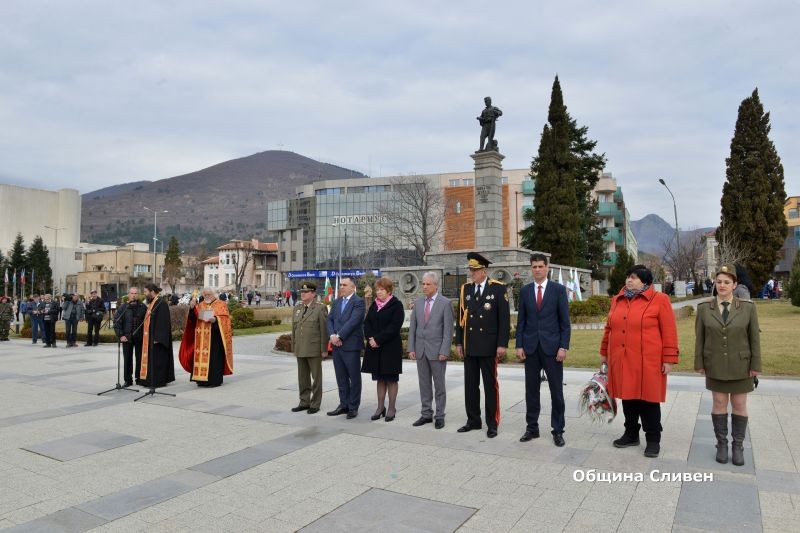 С военни почести и издигане на националното знаме на Република България започна официалната церемония в Сливен по случай 3 март. Хиляди жители и гости на града бяха на площад "Хаджи Димитър" в града, за да отбележат 139 години от Освобождението на страната ни от османско иго и да отдадат почит към загиналите воини.