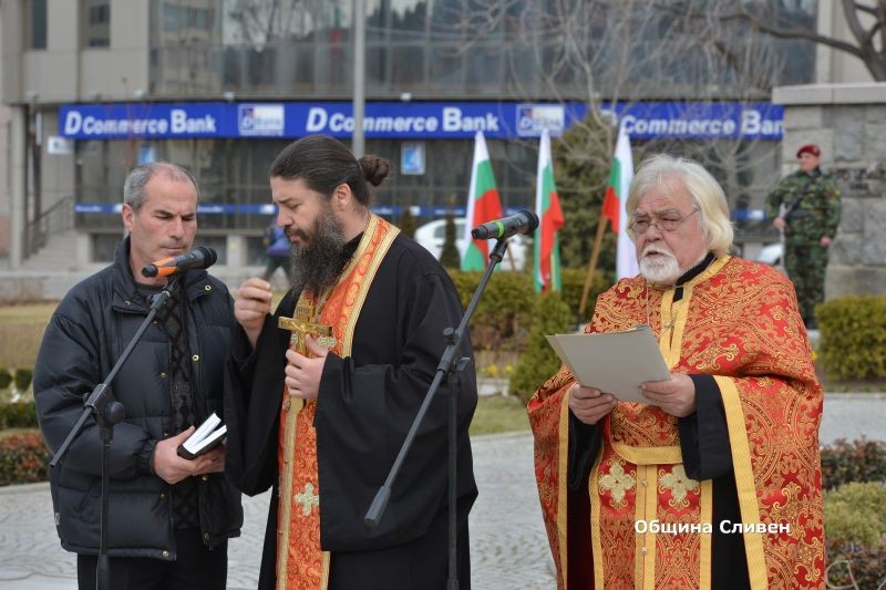 По време на церемонията беше отслужена панихида в памет на загиналите воини за Освобождението на България и благодарствен молебен от свещеници от Сливен. Отец Красимир от храм "Св. Димитър" поздрави присъстващите с Националния празник и заяви, че 3 март е свещена дата, на която България е възкръснала за нов живот. "Копнежът за свобода винаги е бил силен, копнежът за творчество винаги е неудържим, копнежът на духа е непобедим. Такъв копнеж са имали и нашите деди и прадеди и с него са привлечени братята освободители. И след Освобождението, България е претърпявала трудни моменти, но духът е бил несломим, надеждата - постоянна, а любовта е била пламенна", отбеляза свещеникът.