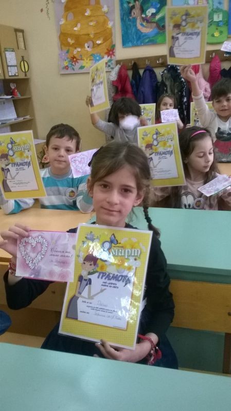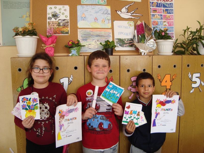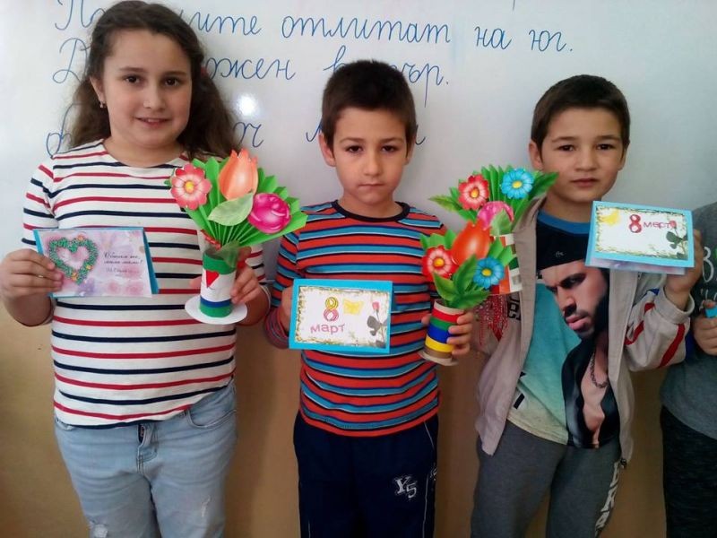 Малките ученици вложиха много старание в направата на картички, грамоти, букети и други красиви предмети, които с обич подариха на своите майки.