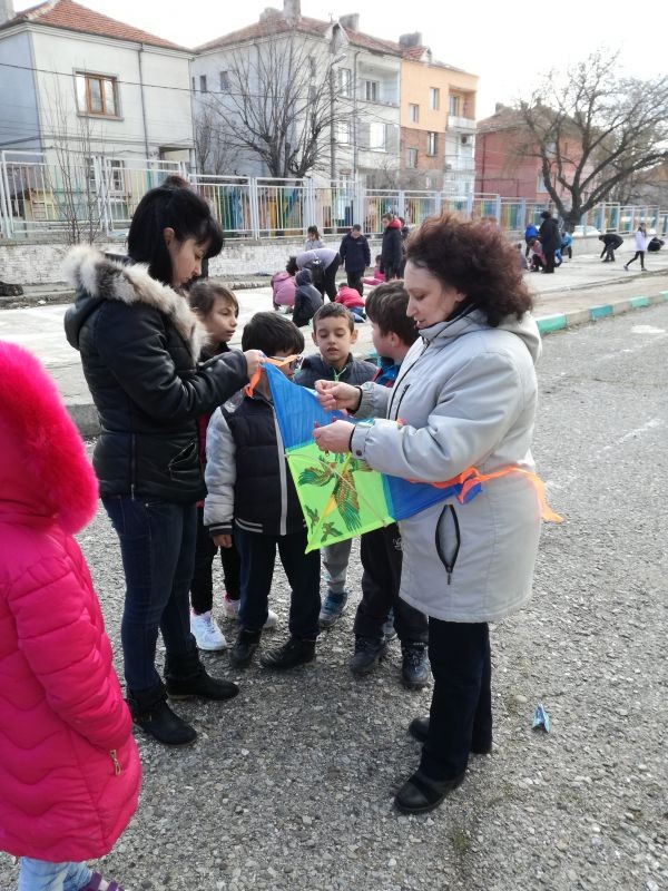 Учениците от I-IV клас се включиха в рисунка на асфалт на тема:" Едно училище за всички". Всички те получиха награди за своя ентусиазъм, пъстри хвърчила,с които се забавляваха през деня.