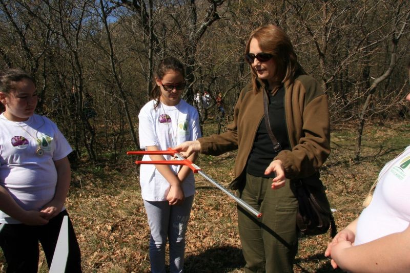 Горски служители от ДГС Сливен показаха на практика начините за измерване на среден диаметър и височина на дърво със специализирани инструменти.