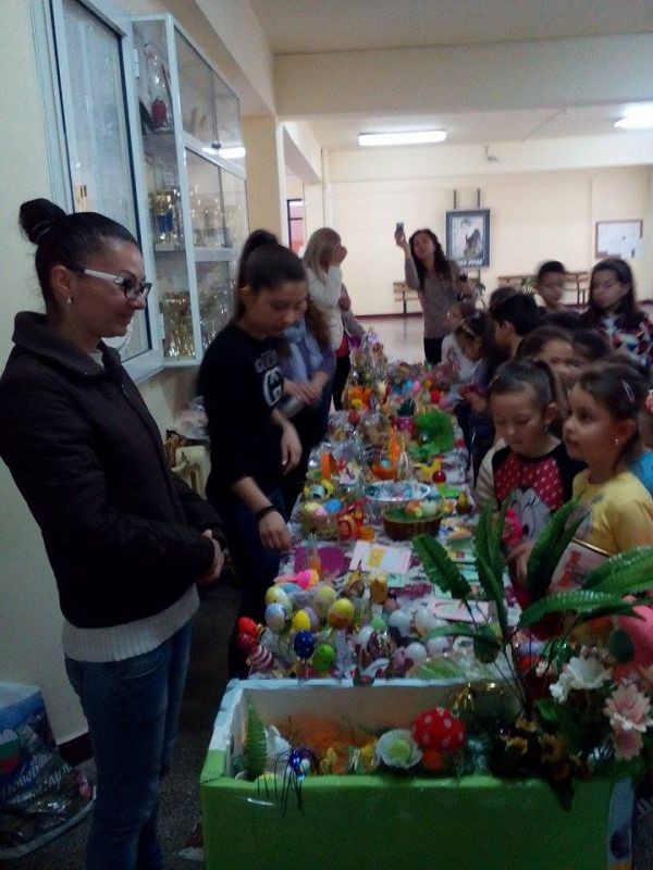 В навечерието на един от най-светлите християнски празници – Великден, учениците от ОУ „Елисавета Багряна” съвместно със своите учители и родители подредиха прекрасен тематичен базар, свързан с празника. Бяха изложени красиво изработени великденски изделия от учениците, яйца, рисунки, картички и вкусни десерти. Те бяха продадени с благотворителна цел.
