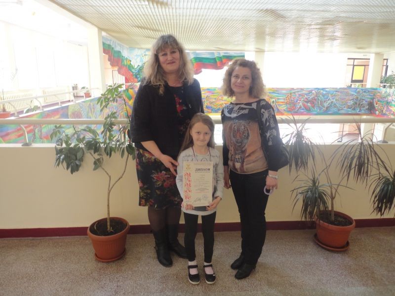 Нашият малък талант Никол Тенева от 1 „д“ клас получи златен медал и ПЪРВО място в своята възрастова група.