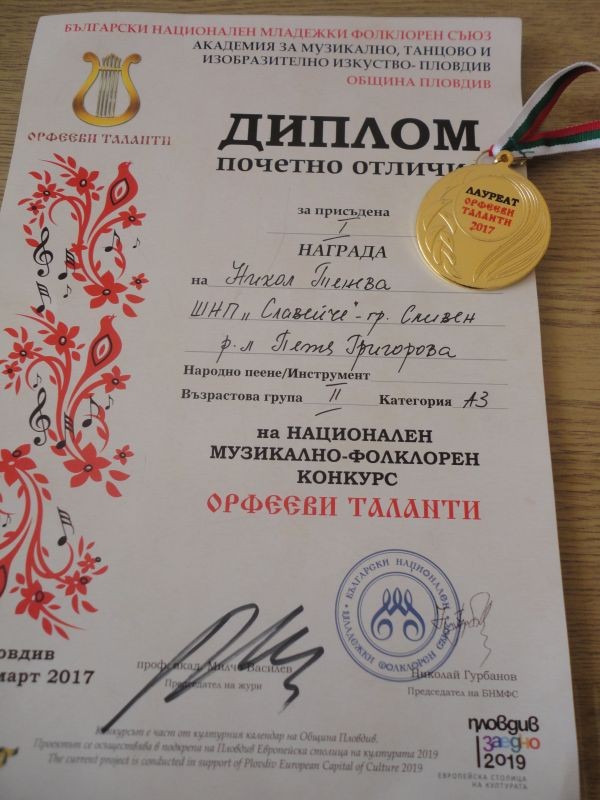 В края на месец март в гр. Пловдив се състоя национален музикално-фолклорен конкурс ОРФЕЕВИ ТАЛАНТИ.
