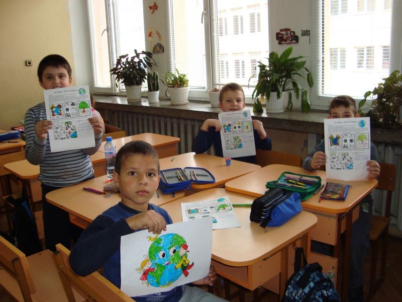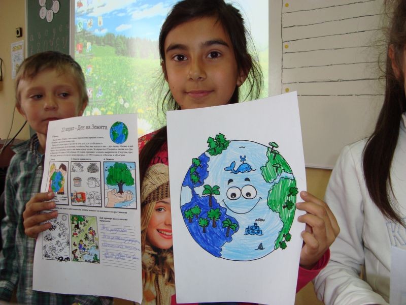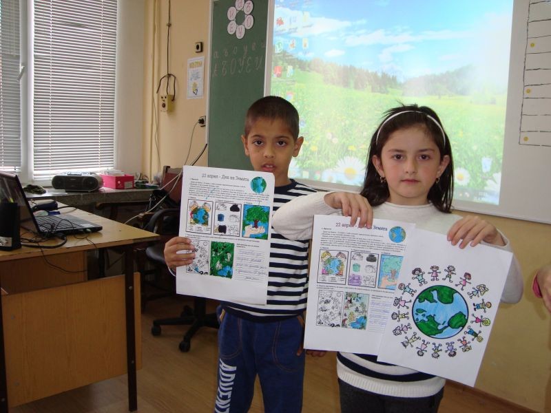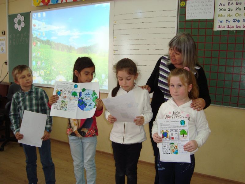 Учениците с интерес изгледаха презентацията за нашата планета, научиха откога се отбелязва този празник и в своите работни карти по групи даваха примери за опазване на природата, определяха правилното и неправилно поведение на човека.