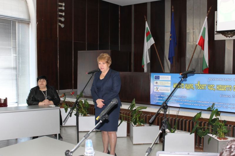 Дина Димитрова – старши експерт в РУО-Сливен и част от екипа на проекта, запозна присъстващите със статистиката до момента. В област Сливен са включени всички 71 училища. Общо 13 164 ученици (от всичко 21 787 ученици в областта) са разделени в 1172 групи. От тях 606 групи с 4930 ученици са за преодоляване на обучителни затруднения, а 566 групи с 8234 ученици – за развитие на творческите заложби. Продължителността на проекта е 29 месеца. Той се финансира по Оперативна програма „Наука и образование за интелигентен растеж“ 2014-2020 г., процедура на директно предоставяне на безвъзмездна финансова помощ: BG05M20P001-2.004 „Развитие на способностите на учениците и повишаване на мотивацията им за учене чрез дейности, развиващи специфични знания, умения и компетентности (твоят час) – фаза 1“.