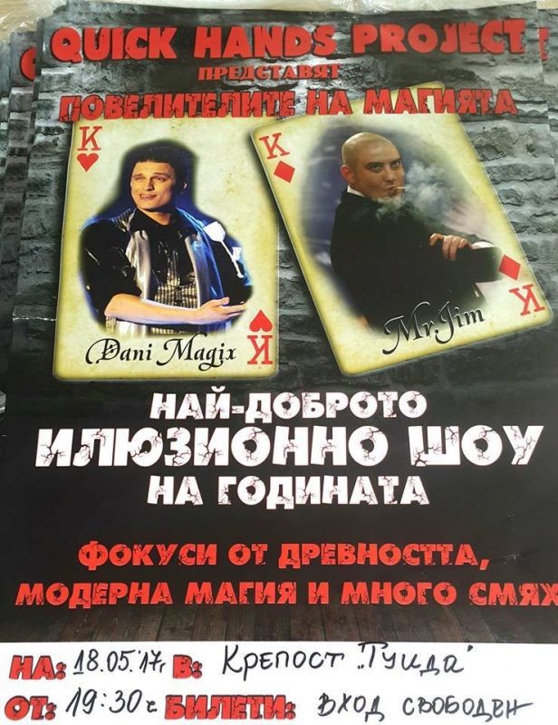 "За откриване на честванията по повод Международния ден на музеите, Община Сливен и крепост Туида ще подарят на сливенската публика нещо, което не е имало на сливенска сцена. Избраната тема за тазгодишния Ден на музеите е "Museums and contested histories: Saying the unspeakable in museums - Музеите и оспорваните истории: Да кажем в музеите неизразимото". Какво по - спорно и по - тайно от магията? Тази година на сцената в Средновековна крепост Туида Ви предлагаме една магична вечер с Куик Хендс проджект и приятели!", каза Мая Иванова.