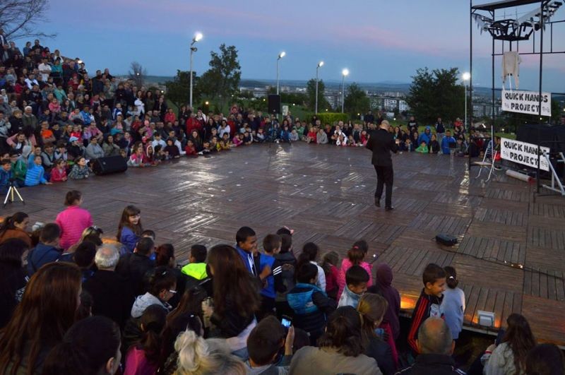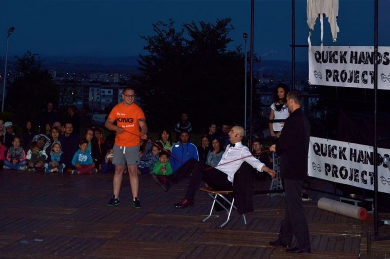 Quick Hands Project представиха богата програма с фокуси с карти, рязане на вестници, завързване с въже и др. Всички номера, някои от които дори опасни, бяха поднесени с доза хумор, което накара публиката да се забавлява още повече. Най-щастливи бяха децата, които чакаха с нетърпение да бъдат повикани на сцената, за да се включат във фокусите. Предвидливо някои от тях се бяха наредили до сцената.