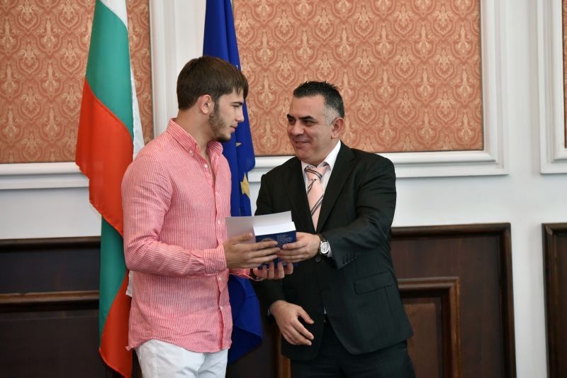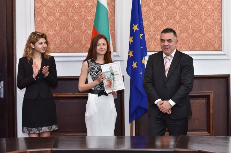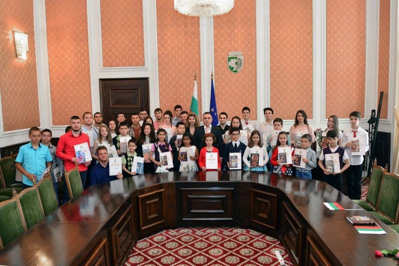 В официалната зала на община Сливен кметът Стефан Радев и неговите заместници Пепа Чиликова и Стоян Марков посрещнаха ученици, носители на награди от национални и международни състезания и конкурси. Отличниците получиха грамота и книга от български автори с посланието: "Вселената се осветява от слънцето – човек от знанието." /В прикачения файл има списък с имената и постиженията на отличените ученици/.