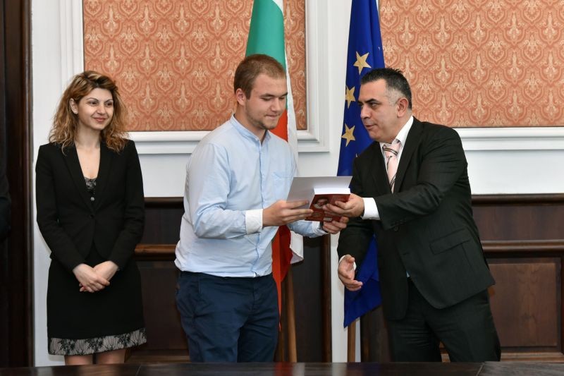 В официалната зала на община Сливен кметът Стефан Радев и неговите заместници Пепа Чиликова и Стоян Марков посрещнаха ученици, носители на награди от национални и международни състезания и конкурси. Отличниците получиха грамота и книга от български автори с посланието: "Вселената се осветява от слънцето – човек от знанието." /В прикачения файл има списък с имената и постиженията на отличените ученици/.
