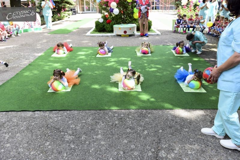 70 „малки, големи спортисти” от четирите групи на Постоянна Детска ясла №14 в Сливен показаха усвоени спортни умения на фона на празнична първоюнска украса, подготвена специално за тях с огромно желание и обич от екипа на детското заведение.