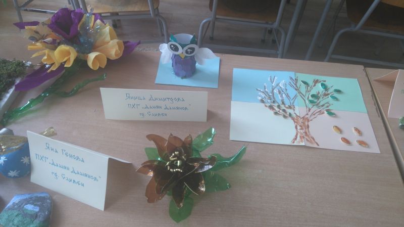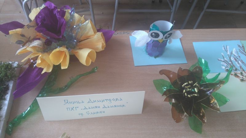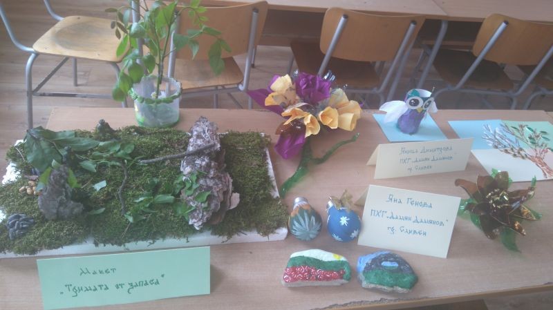 От 2 до 4 юни в Сливен се проведе годишната среща на Националния ученически екопарламент – неправителствена организация с основна цел активизирането на младите хора в България при откриването и решаването на екологични проблеми. На 2 юни в зала „Сливен“ сесията на ученическия екофорум започна с отчитане на резултатите и награждаване на победителите в националния конкурс „Защити ме, за да те има“. За наша радост, сред наградените участници в зала „Сливен“ бе и Яница Димитрова от VII клас в Хуманитарна гимназия „Дамян Дамянов“, която спечели втора награда в раздел рисунка. В следобедните часове сесията на ученическия екофорум продължи в залата на Информационния туристически център на Природен пак „Сините камъни“, където ученици и учители от цялата страна споделиха своя опит в дейността и идеите, които се реализират в екоклубовете. Румяна Панджарова и Яна Генова от XIа клас представиха презентация за работата на учениците от ПХГ „Дамян Дамянов“ в помощ и защита на природата. На 3 юни участниците в срещата имаха възможност да упражнят своята сръчност и да реализират идеите си в творческите работилници за създаване на предмети от природни и отпадъчни материали, а след това посетиха крепостта „Туида“, където участваха в образователни игри с екологична насоченост. Макетите и арт-идеите на нашите ученици в творческите работилници привлякоха вниманието на гостите от всички краища на страната. Благодарим на Елица, Елиа, Анджелина и Теодория от VIа клас, Сияна, Дейвид и Яница от VIIа клас и Румяна и Яна от XIа клас за достойното представяне!