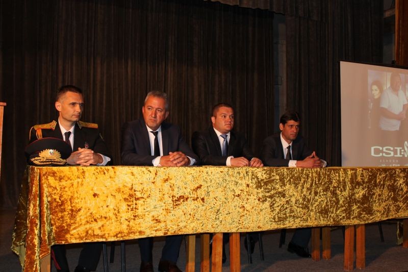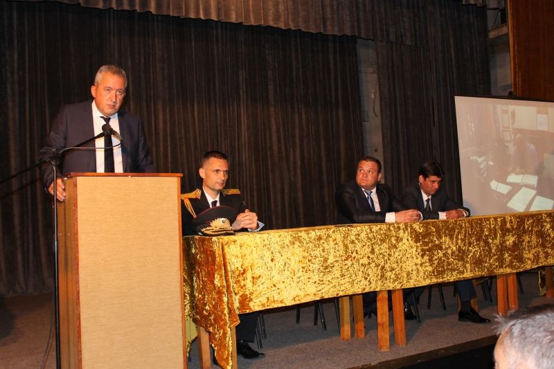 По-късно в залата на ДНА се проведе тържествено събрание на служителите на ОД на МВР - Сливен. На него приветствие отправи областният управител Чавдар Божурски. „С труд и упоритост Вие продължавате да преследвате и постигате поставените цели: криминогенната обстановка в област Сливен е овладяна, разкриваемостта на престъпленията е на много високо ниво, а опазването на обществения ред е под контрол. Постигате тези високи резултати въпреки проблемите от материално-техническо и кадрово естество“, каза той и допълни: „За високите резултати са допринесли поколения служители на МВР и съм убеден, че добрите традиции ще бъдат затвърдени. Обществото вярва във Вас. Бъдете живи и здрави, трупайте знания и опит и работете все така професионално!“, завърши Божурски.