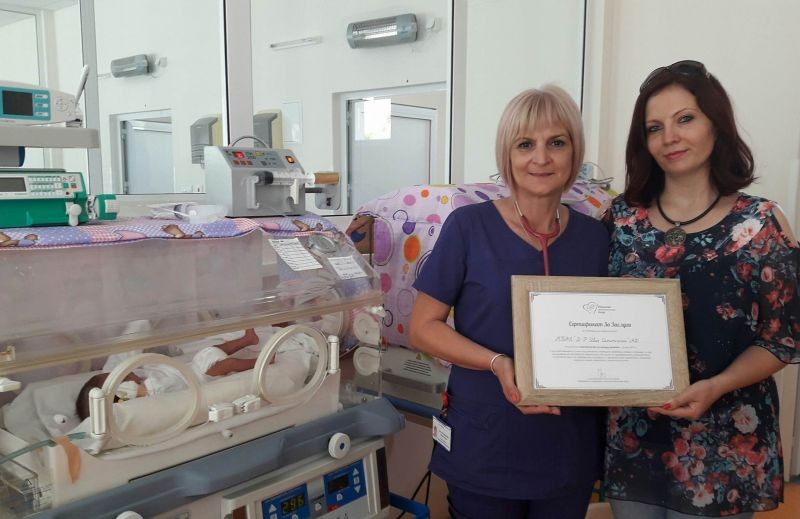Д-р Таня Праматарова, началник Неонатологично отделение, получи сертификата лично от Надя Дренска, член на управителния съвет на Фондация “Нашите недоносени деца”. Тя отправи специални благодарности към д-р Праматарова и целия екип на отделението, които винаги подкрепят със сърце и душа кампаниите на фондацията.