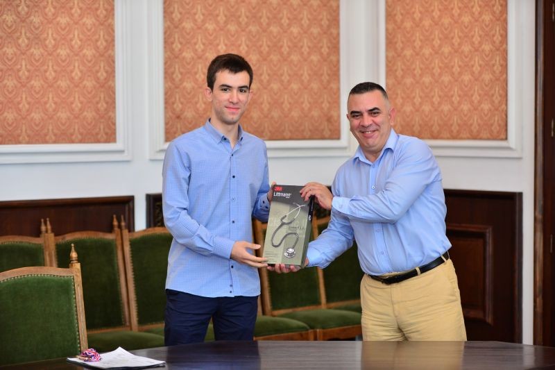 Радев благодари на преподавателите, които са го подготвили за този успех и на семейството му за подкрепата. Кметът подари първия лекарски стетоскоп на Каразапрянов, вече студент по медицина в София.