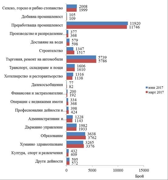 Спрямо края на първото тримесечие на 2017 г. наетите лица в обществения сектор се увеличават