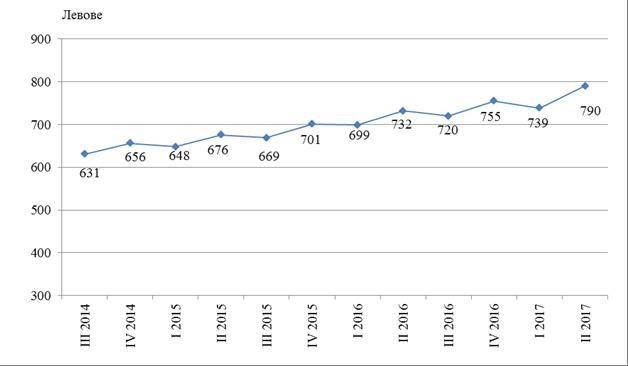 През второто тримесечие на 2017 г. средната месечна работна заплата за област Сливен нараства със 7.9% в сравнение с второто тримесечие на 2016 година (фиг. 2).