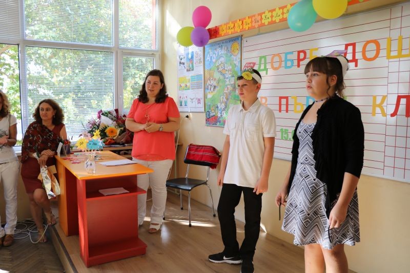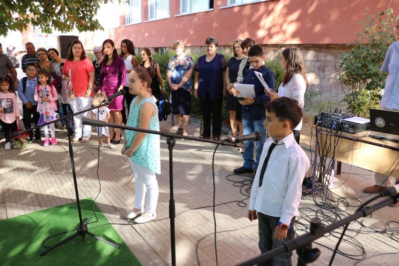 Тържествената церемония, която постави началото на учебната 2017/2018 година, бе открита от директорът на училището г-жа Кънева.
