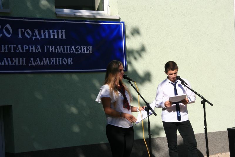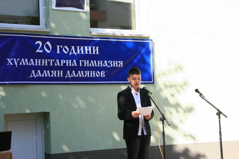 Училищният звънец отбеляза началото на учебната година в Профилираната хуманитарна гимназия „Дамян Дамянов”. Гост на тържеството бе председателката на Обществения съвет Александрина Кънева. В приветственото си слово директорът на гимназията Жельо Радев отбеляза, че вече двадесет години тя изпълнява достойно своята мисия да учи на човещина и българщина младите хора от региона. Той благодари на осмокласниците, избрали хуманитарните науки като посока на личностното си развитие и пожела на всички ученици да пазят традициите на училището и да умножават успехите му. Пожелание за много здраве и успехи на цялата училищна общност отправи председателката на училищното настоятелство Светлана Георгиева. От името на Випуск 2017 добър старт на учители и ученици пожела Благовеста Панкова, студентка първи курс „Българска филология” в СУ „Св. Климент Охридски”. Осмокласникът Дейвид Дечев, приет с най-висок бал, сподели гордостта си да продължи образованието си в любимото училище, в което е още от пети клас.