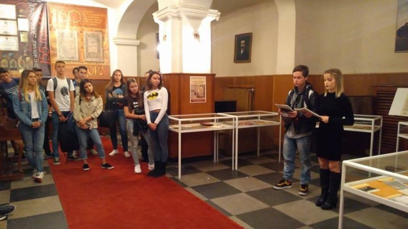 Директорът на библиотека "Зора" представи изложбата и запозна учениците с изложените експонати.Учениците видяха и личния печат на Добри Чинтулов, който се съхранява от РИМ-Сливен. Урокът по родолюбие бе подготвен от ученици, които извършиха предварителна проучвателска дейност, и представен от тях.