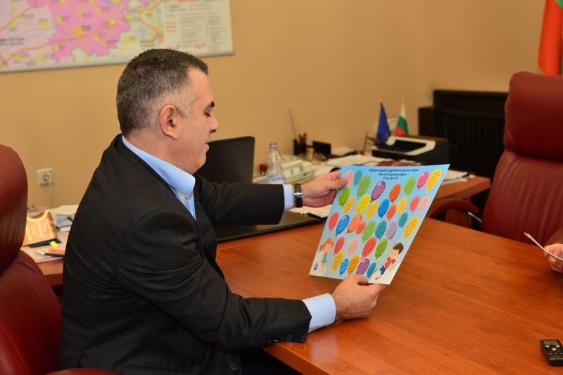Михаела Стефанова, ученичка в ПГ по икономика и Даниела Стоева – от ППМГ „Добри Чинтулов” подариха на кмета на Сливен Стефан Радев пано с послания на децата от всички области в страната, по повод Деня на българската община. Двете ученички са бившия и настоящ титуляри от област Сливен в Съвета на децата към Държавната агенция за закрила на детето /ДАЗД/, с председател Офелия Кънева. „Продължавайте да бъдете все така отговорни и да оправдавате доверието на хората! Нека с общи усилия да правим града все по-желан за туристите!”