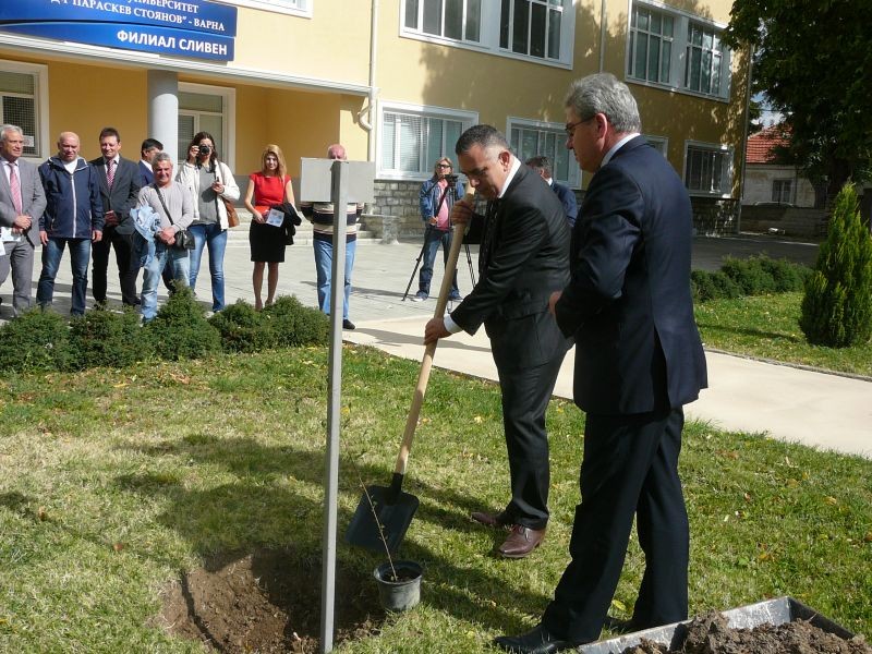 По-късно беше открита нова спортна площадка до сградата на филиала в Сливен. Игрището е изградено по проект „Здраве чрез спорт и зелена среда”. Проектът е разработен от община Сливен, финансиран от национална кампания на Министерството на околната среда и водите и Предприятието за управление на дейностите по опазване на околната среда на тема: „Обичам природата – и аз участвам”. Лентата прерязаха Стефан Радев и проф. д-р Красимир Иванов. Двамата посадиха в двора малък бряст – фиданка, поникнала от семенца на Стария бряст, символ на Сливен.