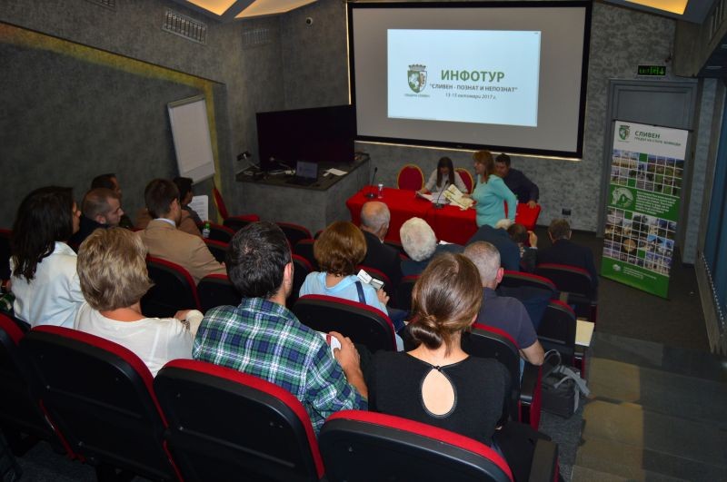 Туроператори, работещи в сферата на входящ и вътрешен туризъм, участваха в инфотур, организиран от Община Сливен от 13 до 15 октомври. В него взеха участие туроператори от София и Велико Търново, председателят на Асоциация на туристическите блогъри Елена Иванова, председателят на Национална асоциация на малкия и среден бизнес в туризма Веселин Банковски, представители на интерактивния гид на България - I loveBulgaria и акад. Сашо Драганов – председател на Националната асоциация за дизайн и реклама, който участва с презентация на тема „Вдъхновени от България”.