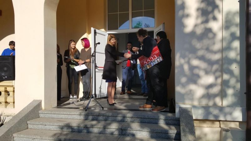 Председателят на „Обществен дарителски фонд“ Дора Куршумова връчи чек от 5 533 лева за професионално осветление и окачване на картините в галерията. Сумата е преведена по сметката на гимназията и е събрана по време на пленера на виното. Инициативата е съвместна с фонд „13 века България“, с представител Антон Кънчев, и винарска изба „Афузов“ на общинския съветник Минчо Афузов, които присъстваха на събитието днес.