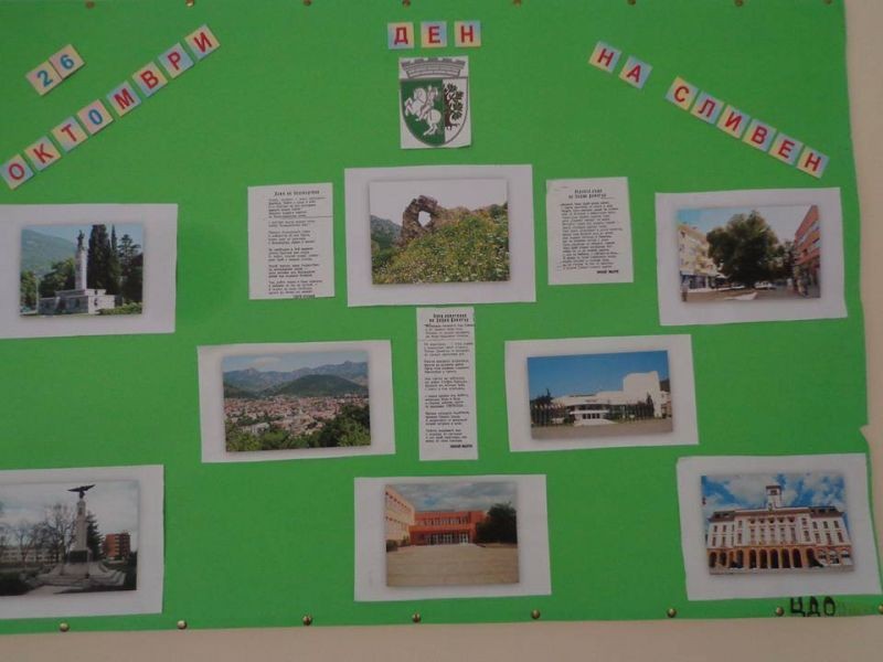 В ОУ "Елисавета Багряна" атмосферата беше празнична още седмица преди Деня на Сливен. Учители подготвиха информационни табла под надслов "Градът, който обичаме", представящи историята на града. На тях бяха окачени и снимки. Междувременно бяха изложени картини на ученици от първи до четвърти клас, на които бяха нарисувани някои от символите на града и величието на Сините камъни.