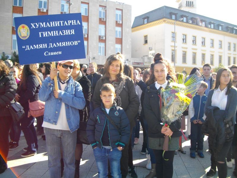 На 26 октомври група ученици, учители и служители от Профилираната хуманитарна гимназия „Дамян Дамянов”участва в тържествения ритуал, посветен на празника на Сливен - Димитровден. В знак на признателност поднесохме цветя пред паметника на Хаджи Димитър и на сливенските възрожденци.