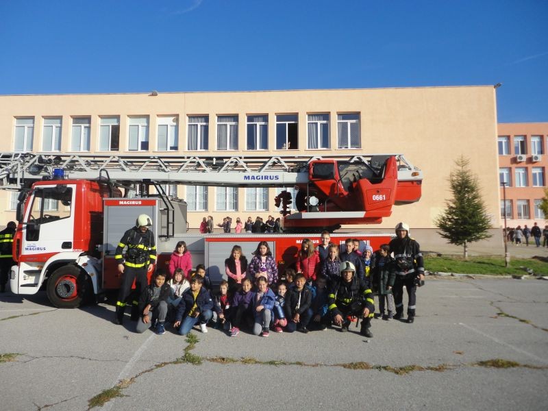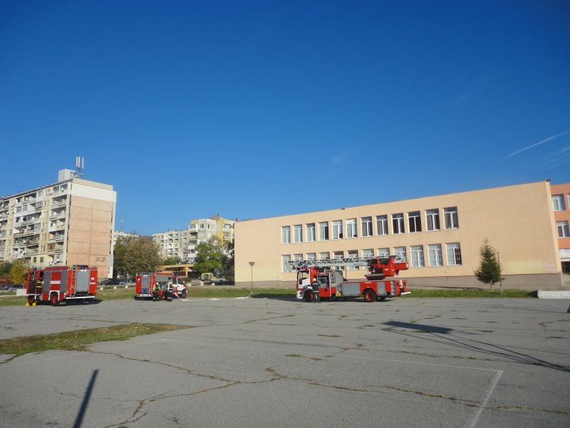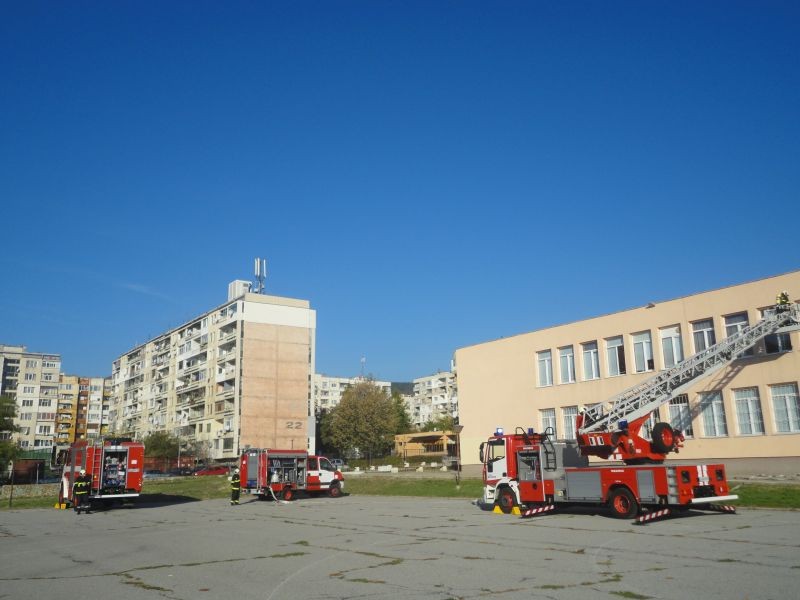 Съвместно училищно занятие за усвояване на плана за действие при пожар с РСПБЗН - Сливен