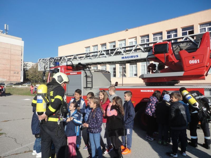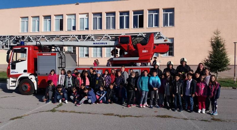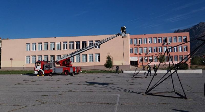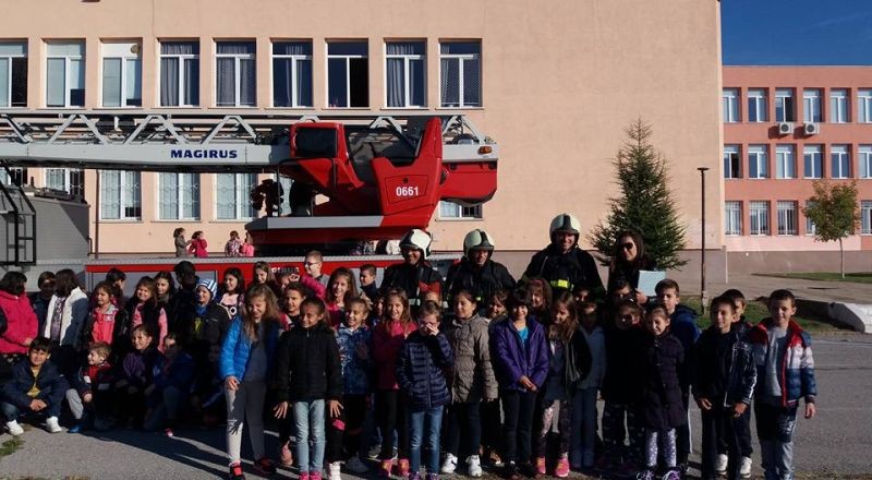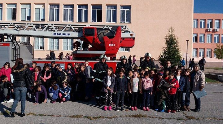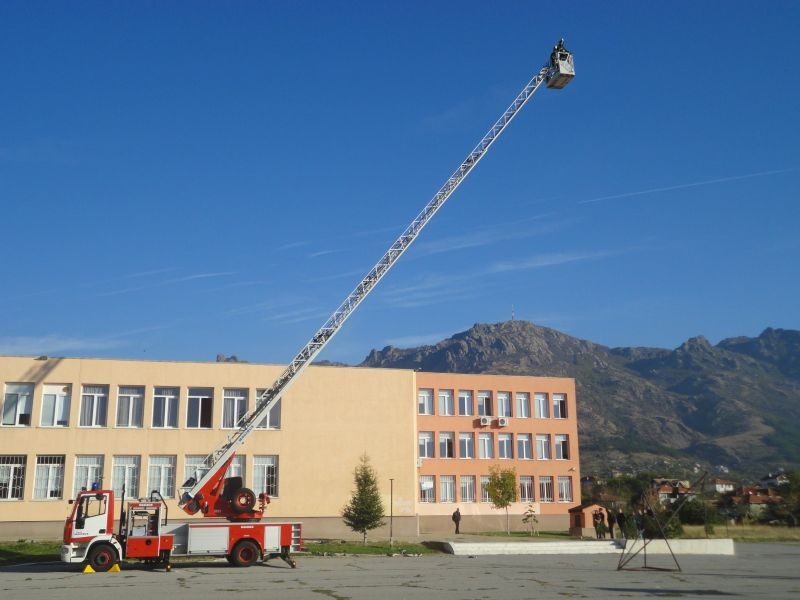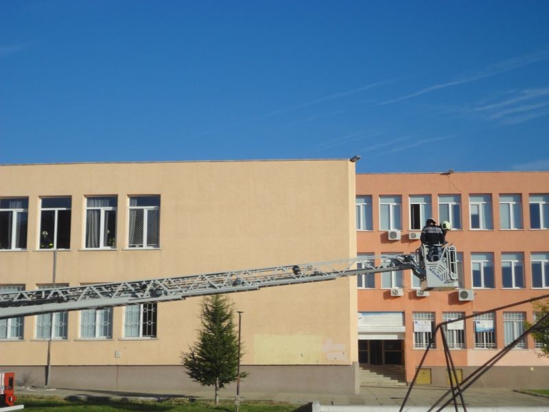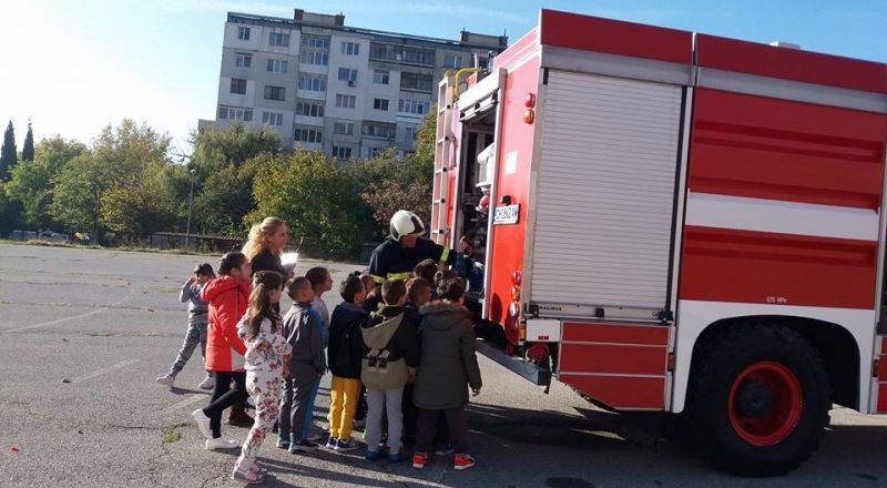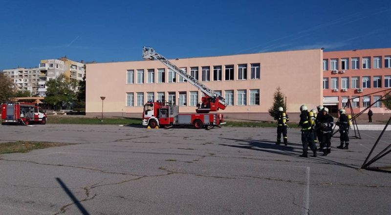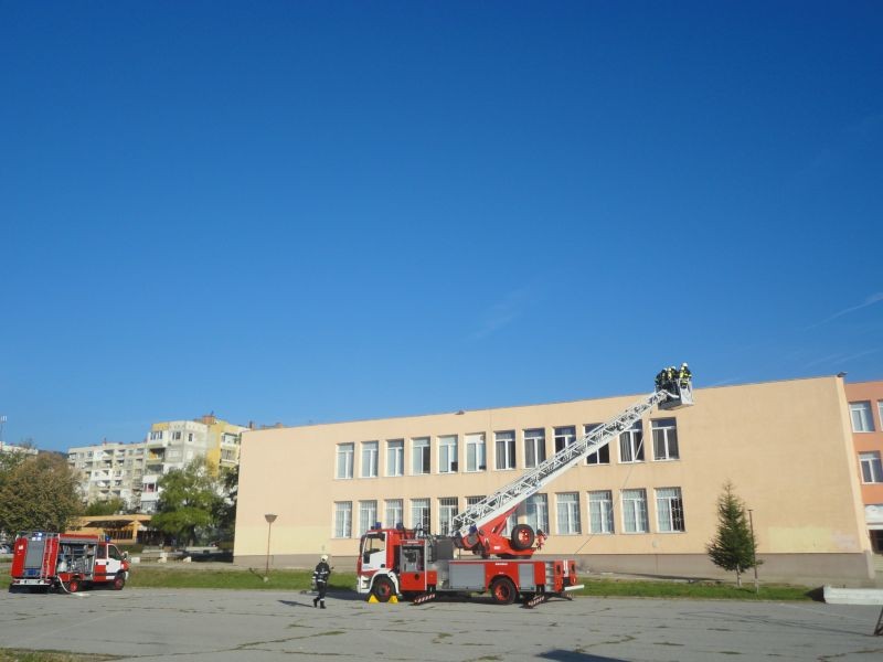 Демонстративно занятие по провеждане на гасителни действия, комбинирани със спасителна акция, се състоя в ОУ „Елисавета Багряна” в петък, 27 октомври, в Сливен.