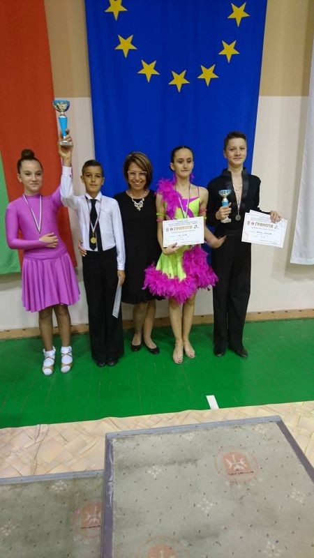 Христо Недялков и Христиана Къчева спечелиха 2 златни медала в латиноамерикан-ските танци при 9 и 11 - годишните състезатели.