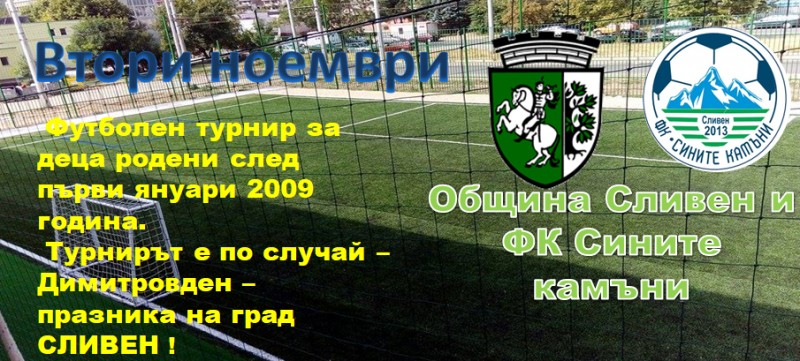 Футболен клуб „Сините камъни“ и Община Сливен организират турнир за деца, родени след 1 януари 2009 година. Надпреварата ще се състои на 2 ноември от 10 часа на площадката на клуба – „Арена-Сините камъни“ в квартал „Клуцохор“. Турнирът е посветен на празника на Сливен – Димитровден, и трябваше да се проведе миналата седмица. Заради лошите метеорологични условия той беше отложен за 2-ри ноември. В състезанието ще вземат участие 6 отбора – два от Сливен, два от Ямбол и два от квартал „Речица“. Подготвени са изненади за участниците.