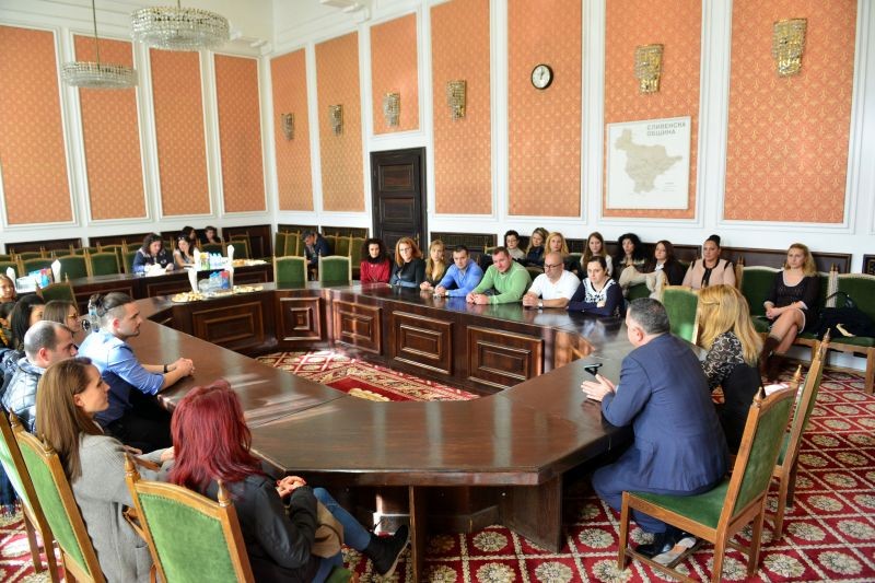 Кметът на община Сливен Стефан Радев и заместник-кметът по хуманитарни дейности Пепа Чиликова се срещнаха днес с близо 30 новоназначени учители от сливенски училища.