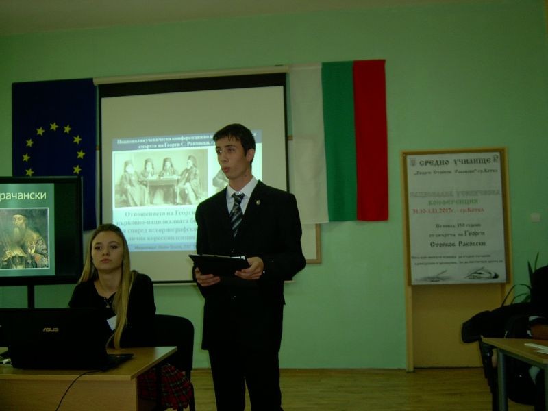 „Отношението на Георги С. Раковски към църковно-националната борба и приносът му в нея според историографските му произведения, лична кореспонденция и публицистика”, е темата на презентацията, с която дванайсетокласникът от Профилираната хуманитарна гимназия „Дамян Дамянов” Иван Тенев предизвика интереса на журито от трима професори-историци на проведената в Котел национална ученическа конференция. Той получи Грамота за отлично представяне и подарък – книгата на Панко Анчев „Българският ум, непрочетеният Г.С. Раковски”. Добре се представиха и останалите трима участници-единайсетокласници. Петя Андреева прочете своето есе „Георги Раковски за политиката на Русия спрямо българите”, а нейната съученичка Денислава Стойчева – есето си „Георги Раковски – идеолог на Българското Възраждане”. „Публицистът Раковски – непознатата страна на революционера”, бе темата на есето на Габриела Калчева.