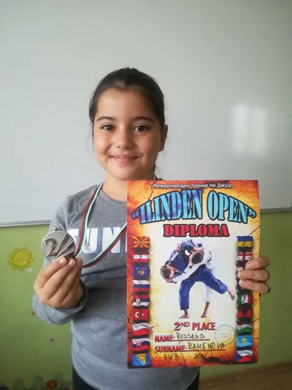 Сребърен медал от Международния турнир по джудо, проведен на 11.11.2017 г. в гр. София, спечели Красена Каменова, ученичка от 2 "в" клас.