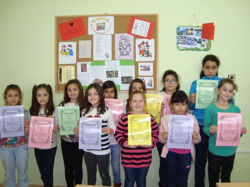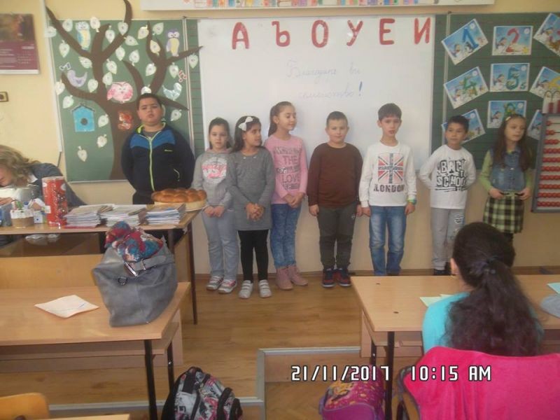 Учениците от първи клас изработиха картички и красиви рисунки за своите семейства, с които благодариха на близките си за това, че са до тях, за обичта и подкрепата им. Поднесоха на своите гости рецитал, в който бяха включени стихове посветени на семейните ценности, на единството и доверието.