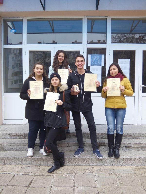 Учениците Снежана Митева 11 "Г", Станилина Георгиева, Рафаел Кънев, Мария Василева и Елена Стамберова от 11 "Д" взеха участие в Националния кръг на многоезичното състезание, което се проведе на 25.11.2017. в гр. Плевен. Благодарение на своите отлични знания по немски и английски език, те не срещнаха никакви трудности и се справиха отлично с поставените задачи, за което получиха своите сертификати. Освен участието в състезанието, учениците имаха възможност да разгледат историческите забележителности на града и да посетят Панорамата"Плевенска епопея 1887", уникален и единствен художествен музей на Балканския полуостров.