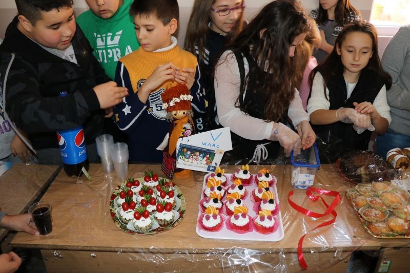 Зала "Слънце" бе отрупана с коледни лакомства, картички и коледни украси, които привличаха вниманието на малки и големи.